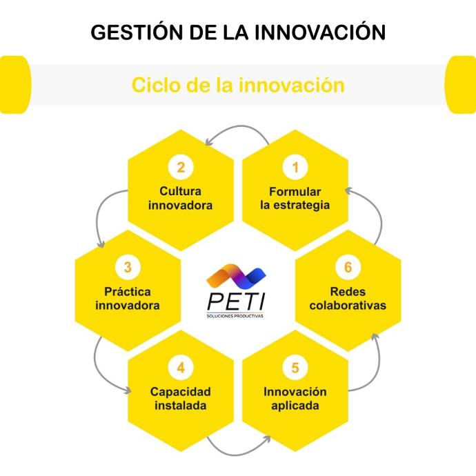 En Peti Soluciones productivas acompañamos a las empresas a pasar de la creatividad a la innovación, con una estrategia clara de innovación articulada a la estrategia empresarial.
