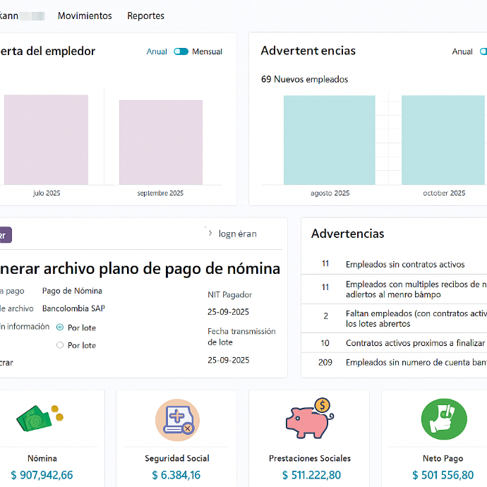 Nuestro software está diseñado para simplificar el trabajo de tu equipo, reducir errores y garantizar que cada liquidación se realice de forma rápida, segura y en línea con la normatividad colombiana. Charlemos