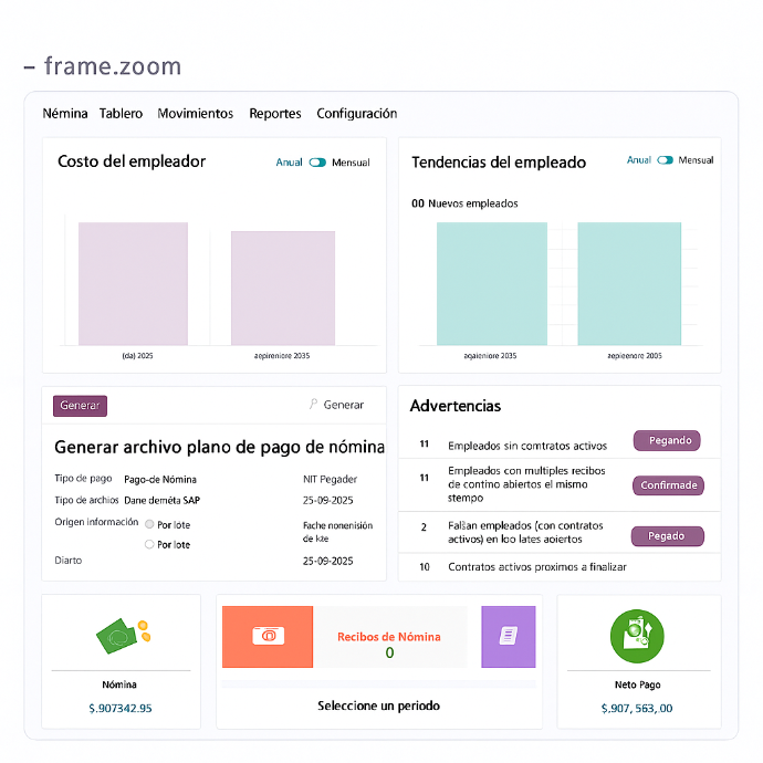 Implementar un software de Nómina Electrónica con PETI Soluciones Productivas garantiza cumplimiento normativo con la DIAN, evitando sanciones y errores en cálculos gracias a la automatización de procesos . Permite un importante ahorro de tiempo y eficiencia , integrando la nómina con contabilidad, bancos y seguridad social. Además, se actualiza automáticamente frente a cambios legales y ofrece un mejor control financiero y contable mediante reportes precisos. Con documentación digital, asegura trazabilidad, transparencia y seguridad de la información , mejorando la experiencia de los empleados. Todo esto se traduce en reducción de costos operativos y mayor confianza en la gestión empresarial.